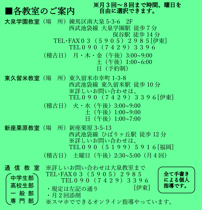 当教室は、一人一人の可能性を大切にした指導を行っています。
